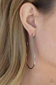 A shiny silver bar sleekly curls into an elongated hoop for a chic look. Earring attaches to a standard post fitting. Hoop measures approximately 1 1/2" in diameter.