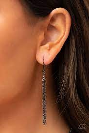 A metallic mashup of silver and gunmetal chains stream out from an oversized gunmetal beaded fitting at the bottom of a chunky gunmetal mesh chain, creating a tantalizing tassel down the chest. Features an adjustable clasp closure.