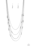 Glistening silver chains, sporadically infused with a quartet of silver beads link into fashionable layers below the neckline for a monochromatic medley. Features an adjustable clasp closure.
