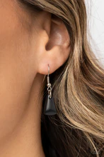 Separated by dainty silver beads, pieces of triangular cut black stones gradually increase in size as they fan out below the collar for an earthy statement. Features an adjustable clasp closure.