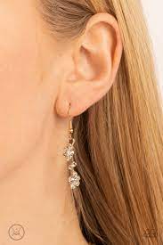 Featuring pronged gold fittings, pairs and clusters of dainty white rhinestones delicately connect to a strand of glassy white rhinestones around the neck for a regal attitude. Features an adjustable clasp closure.